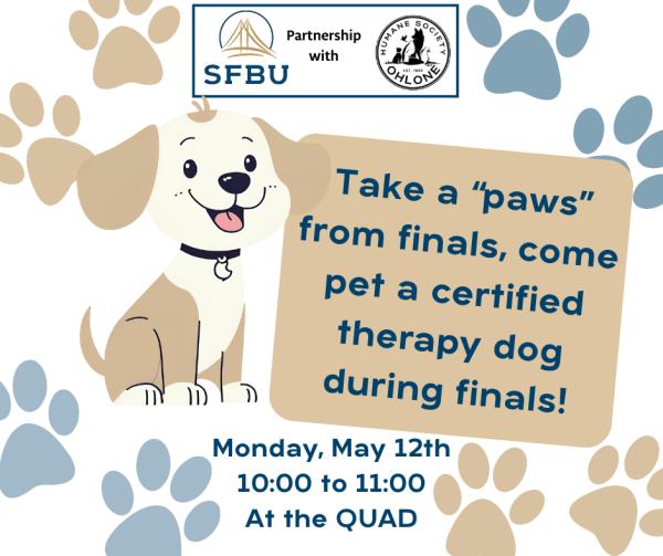 All events Monthly events Weekly events Daily events Dog Therapy May 12, 2025 | 10:00am - 12:00pm Paw-se during finals to pet some therapy dogs in the quad! Event Details Quad CA United States 36.778261, -119.4179324